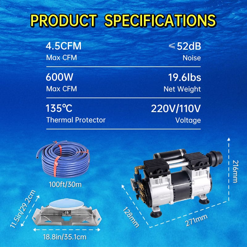 - Uso: Beneficioso para peces que consumen mucho oxígeno, medicación, o para crear cortinas de burbujas que dificultan algas.