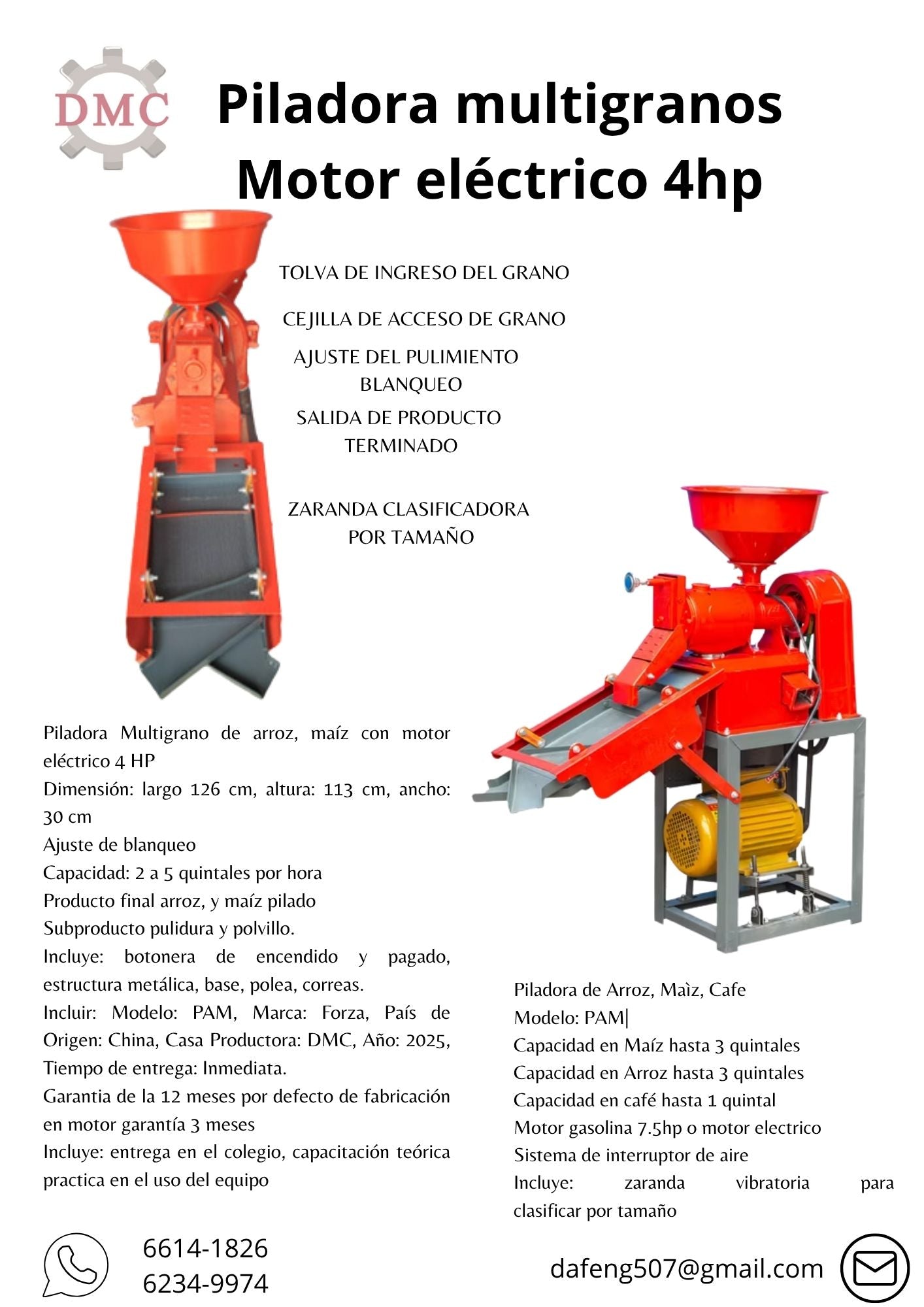 Piladora de arroz, maíz y café multigranos con motor eléctrico.