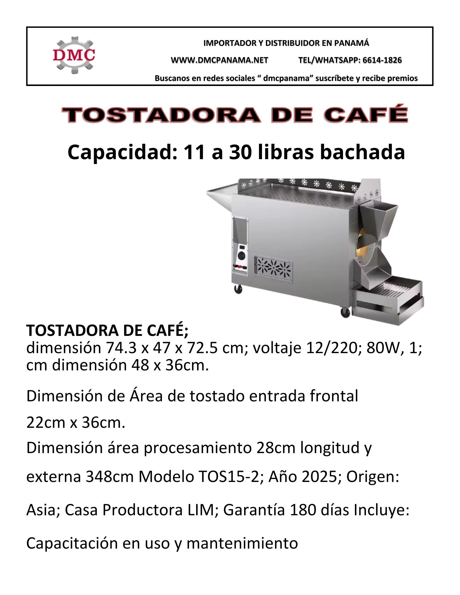 TOSTADORA DE CAFÉ - capacidad 11 a 30 libras - eléctrica, gas, solar 12 Volts