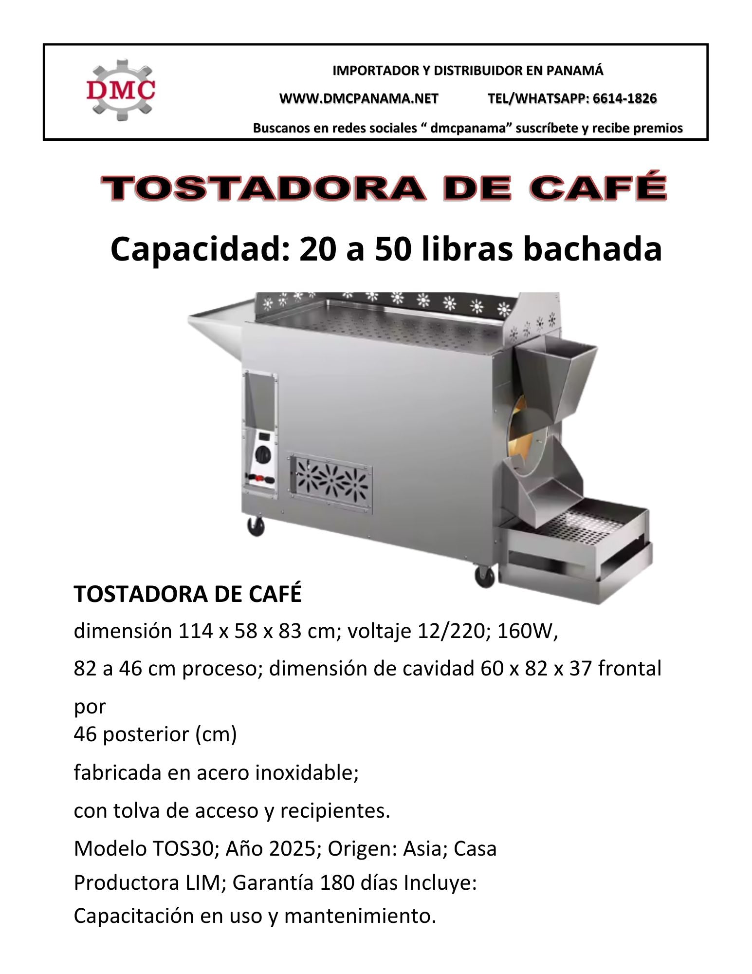 TOSTADORA DE CAFÉ capacidad 20 a 50 libras - eléctrica, solar, gas